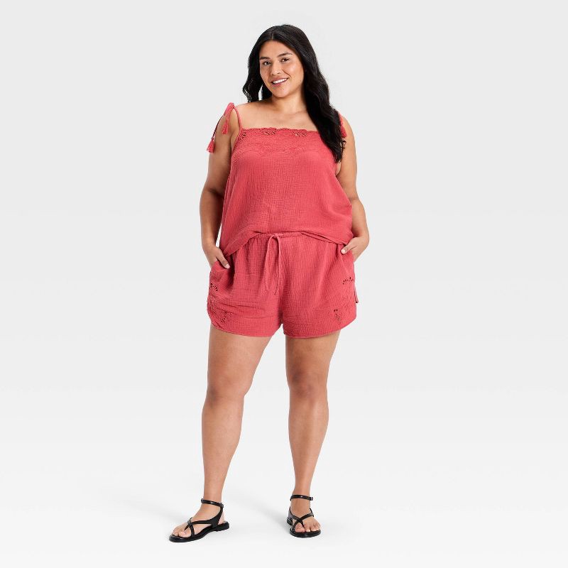 Look effortlessly chic in this Cutwork Tank Top from Universal Thread™. Made of 100% cotton, this tank top keeps you cool and comfy. It is fashioned with a square neckline and features cutwork detaili…