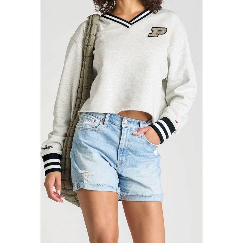 NCAA Purdue Boilermakers Women's Champion Ash V-Neck Sweatshirt - XL