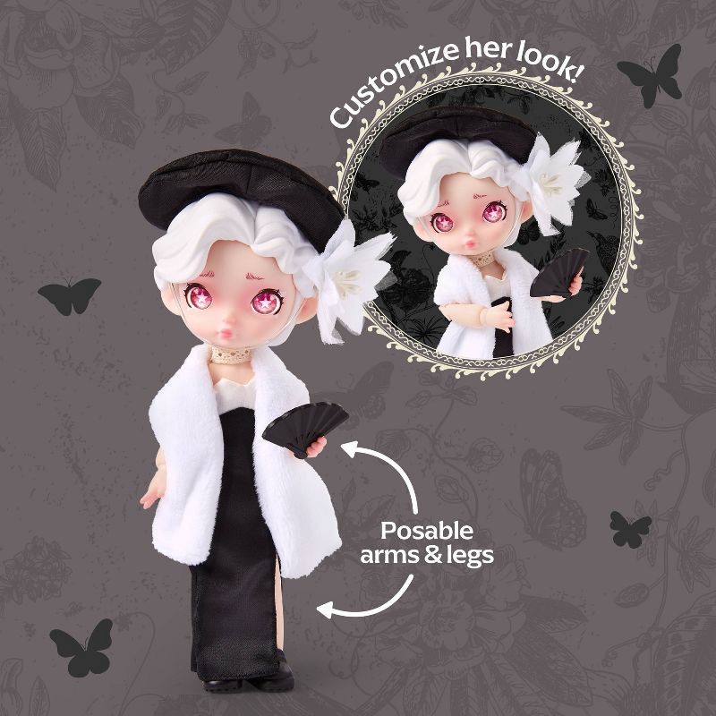 - Blind Box Collectible Dolls: Experience a timeless blend of retro and futuristic beauty in stunning black and white.