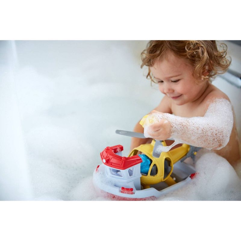 No water rescue is out of reach when the Green Toys Rescue Boat and Helicopter gets the call! This two-in-one toy is just as fun on land as it is in water, with a bright yellow, full-size Helicopter nā¦