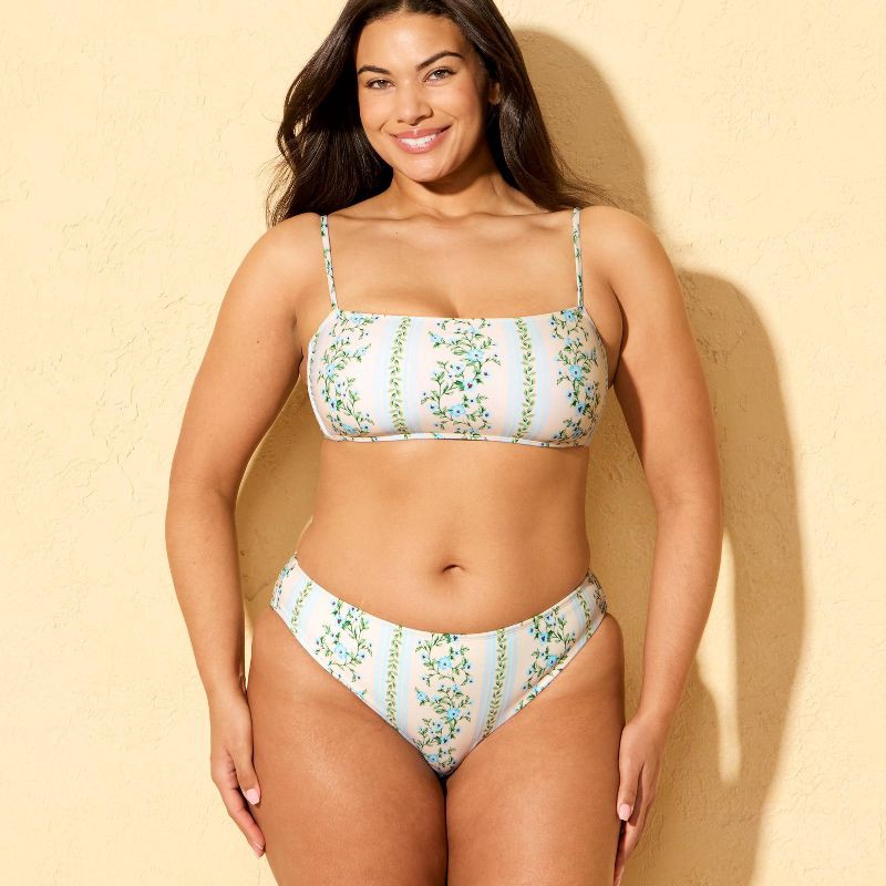 - Floral print high-leg cheeky bikini bottom