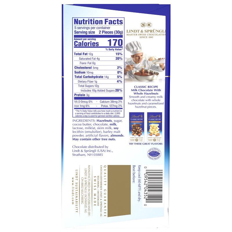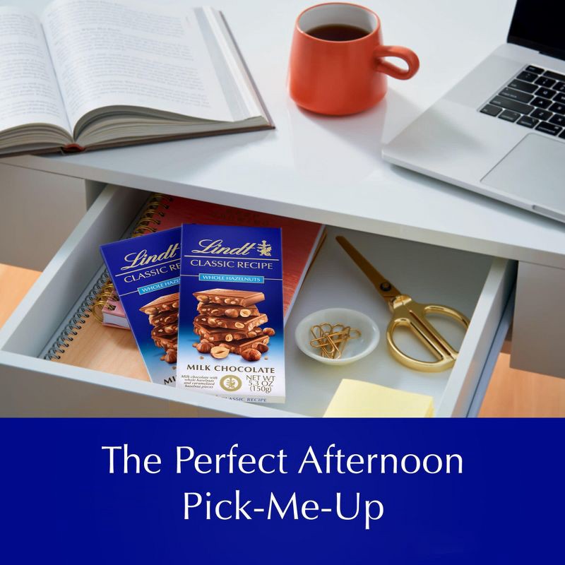 - 5.3 oz. of Lindt CLASSIC RECIPE Whole Hazelnut Milk Chocolate Bar