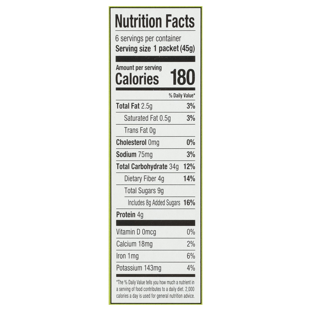 Oat Blend (Whole Grain Oats, Oat Bran), Sugar, Diced Dried Apples, Brown Sugar, Natural Flavors, Cinnamon, Sea Salt.