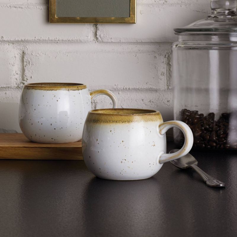 - Round stoneware reactive glaze mug is great for everyday use