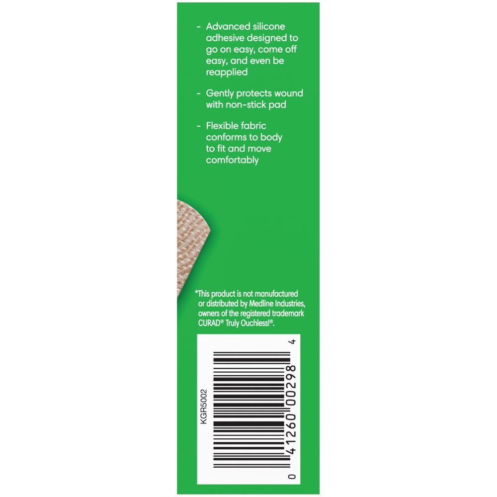 Advanced silicone adhesive designed to go on easy, come off easy, and even be reappliedGently protects wound with non-stick padFlexible fabric conforms to body to fit and move comfortablyFlexible fabr…