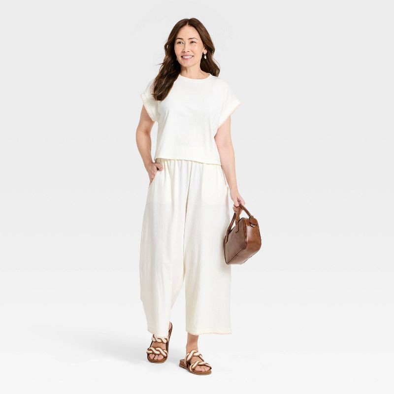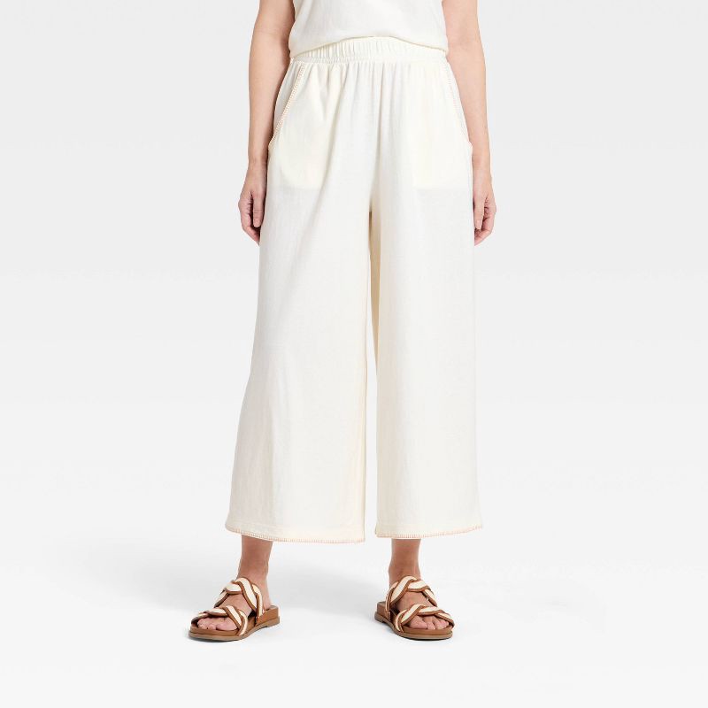 Women's Mid-Rise Wide Crop Leg Jersey Knit Pull-On Pants - Universal Thread™ Cream XS