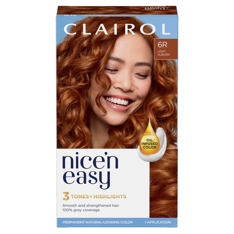 Clairol Nice'n Easy Permanent Hair Color Dye Kit - 6R Light Auburn Red: Moisturizing, Paraben-Free, Contains Coconut Oil