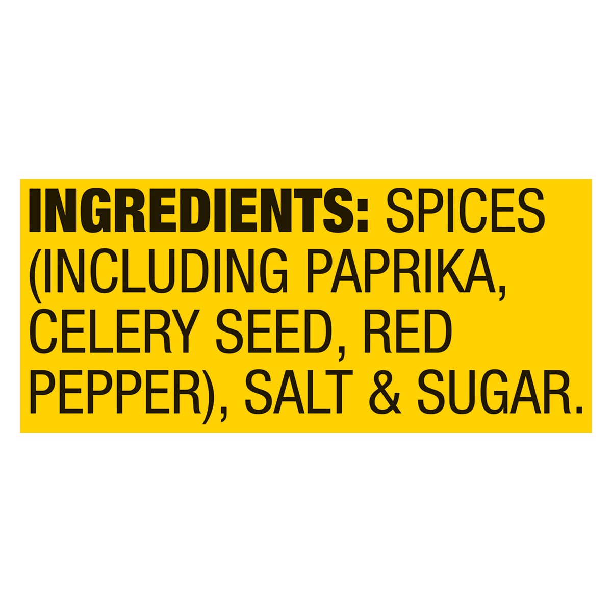 Spices (Including Paprika, Celery Seed, Red Pepper), Salt & Sugar.