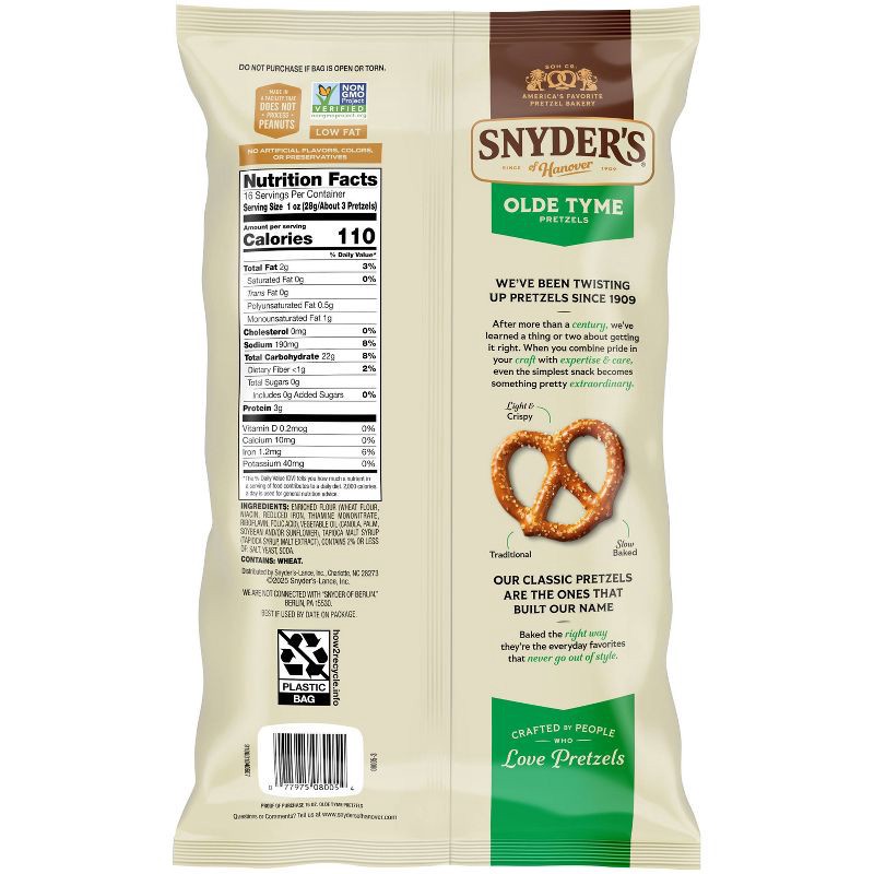 - Includes one (1) 16-ounce bag of Snyder's of Hanover Olde Tyme Pretzels