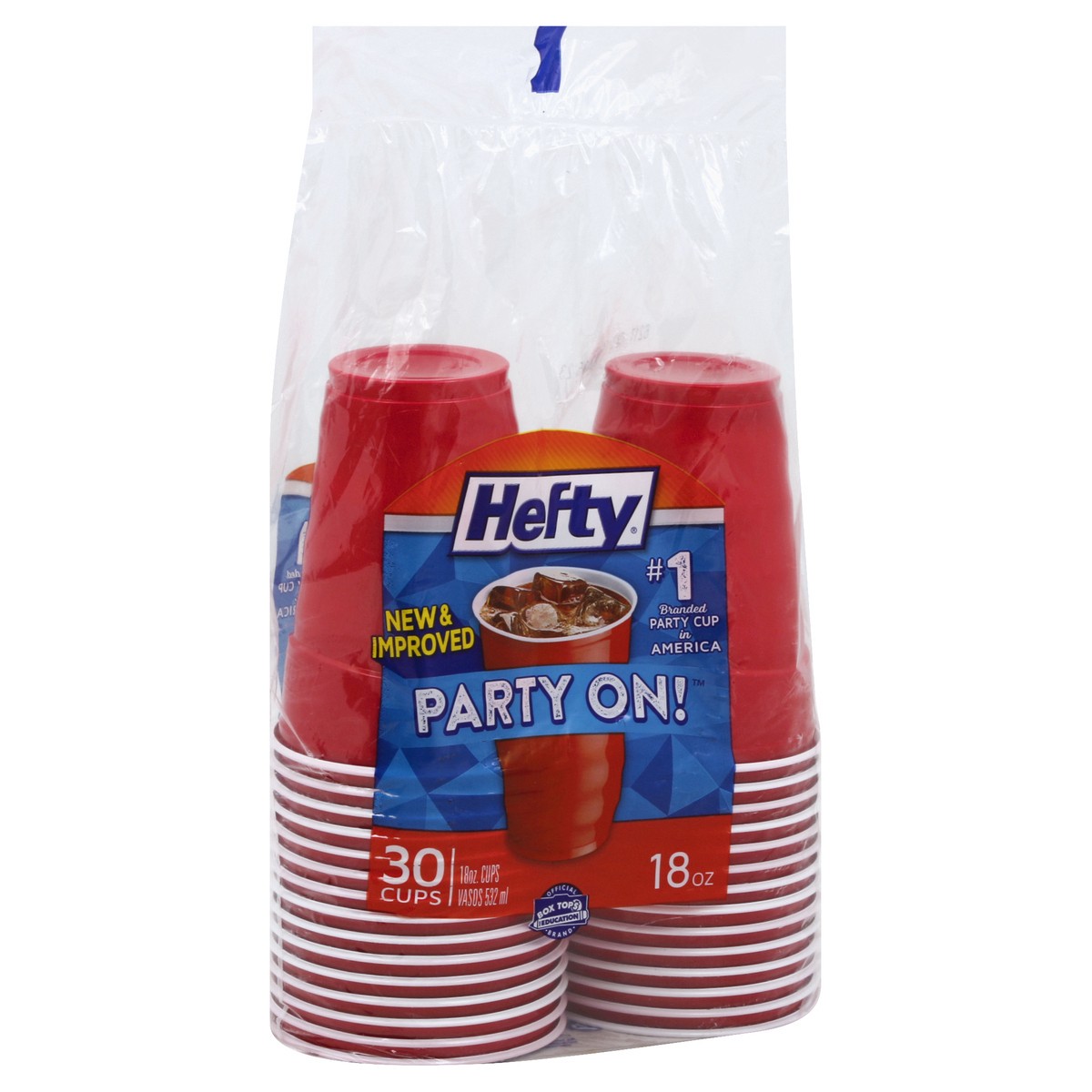 532 ml. New & improved. Party on! No 1 branded party cup in America. Earn cash for your school! Box Tops for Education. To contact us visit Hefty.com, call: 1-800-433-2244 or write: Hefty Brands, PO B…