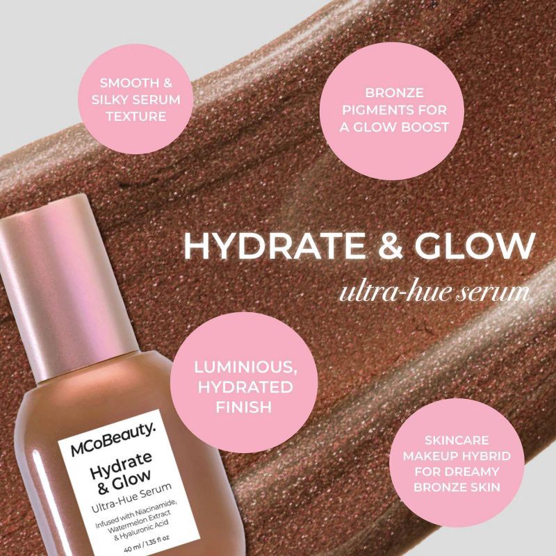 MCoBeauty HYDRATE & GLOW ULTRA-HUE SERUM is a 3-in-1 skincare-makeup hybrid with a sheer bronze tint that nourishes and illuminates your complexion. It has a silky, non-sticky gel-serum texture that f…