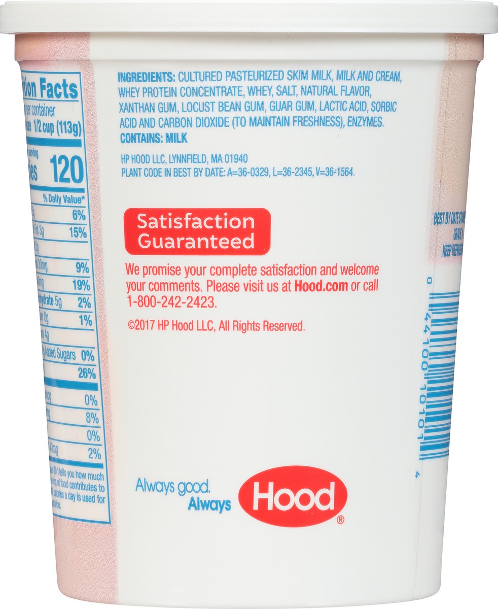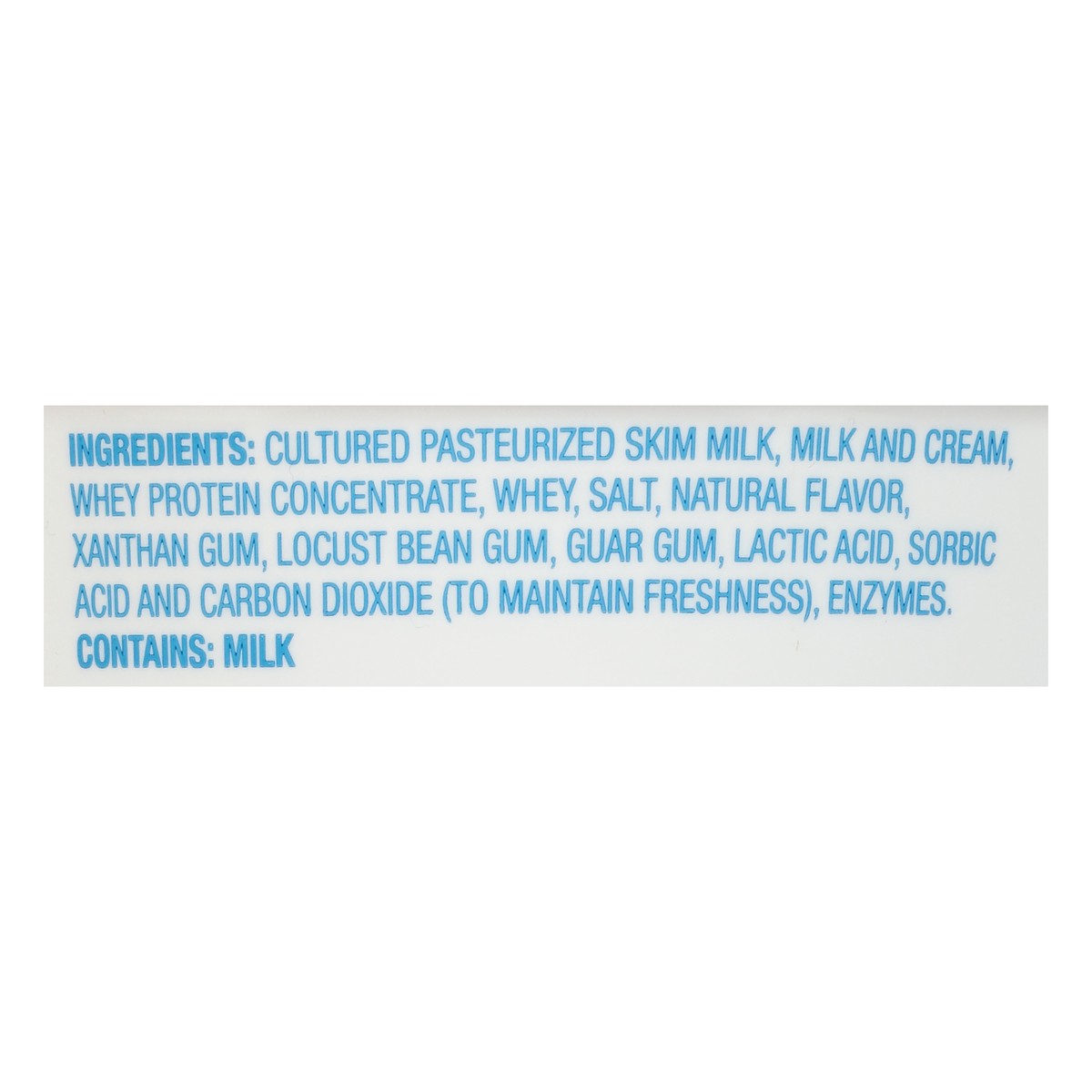 Cultured Pasteurized Skim Milk, Milk and Cream, Whey Protein Concentrate, Whey, Salt, Natural Flavor, Xanthan Gum, Locust Bean Gum, Guar Gum, Lactic Acid, Sorbic Acid and Carbon Dioxide (to Maintain F…