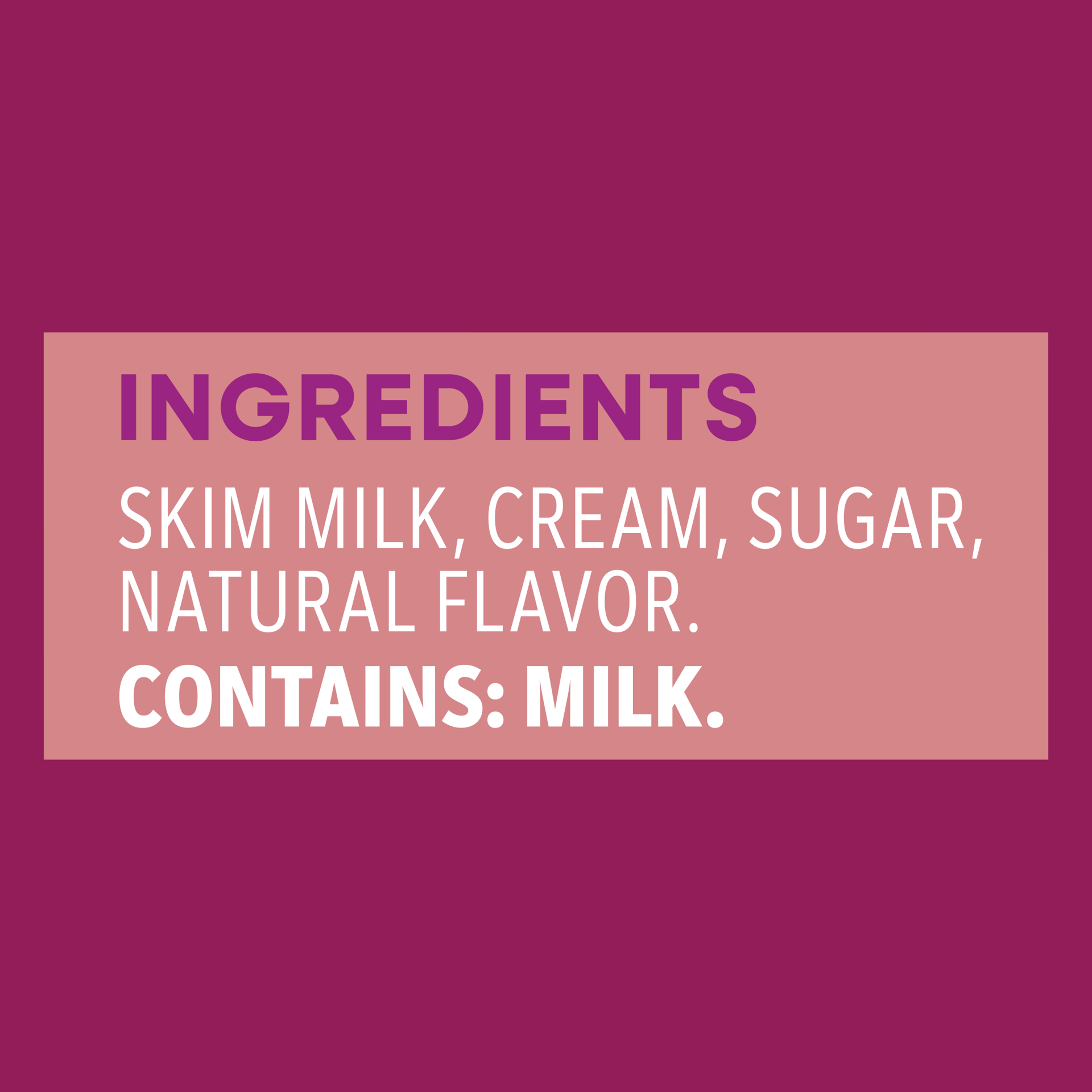 Skim Milk, Cream, Sugar, Natural Flavor.