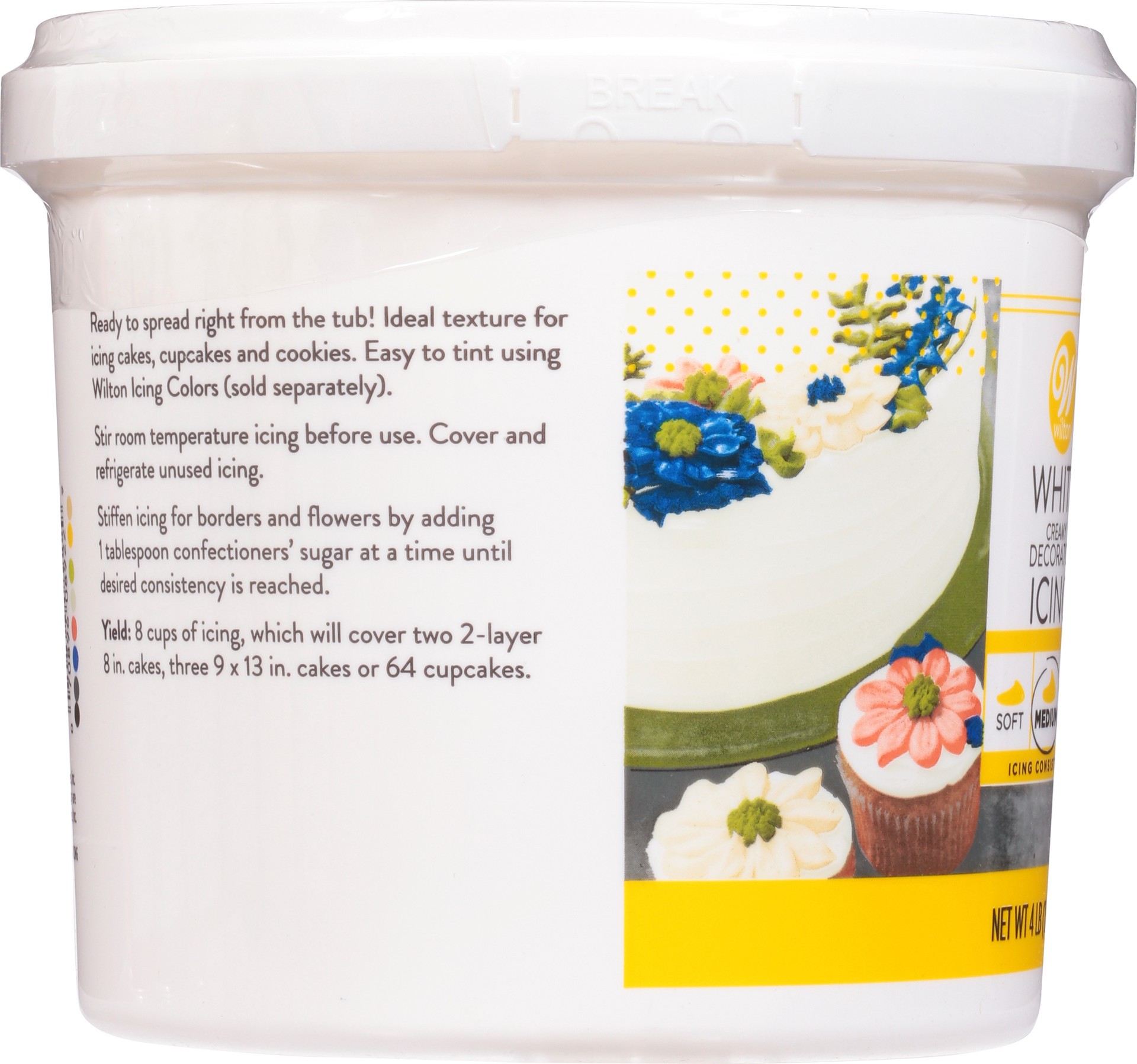 Ice smooth, pipe, decorate and more! Soft. Medium. Stiff. Icing consistency. Soft. Read to spread right from the tub! Ideal texture for icing cakes, cupcakes and cookies. Easy to tint using Wilton Iciā¦