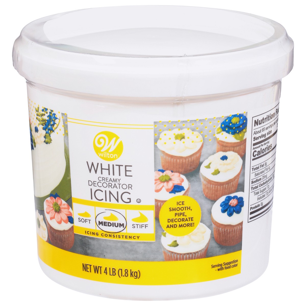 Ice smooth, pipe, decorate and more! Soft. Medium. Stiff. Icing consistency. Soft. Read to spread right from the tub! Ideal texture for icing cakes, cupcakes and cookies. Easy to tint using Wilton Ici…