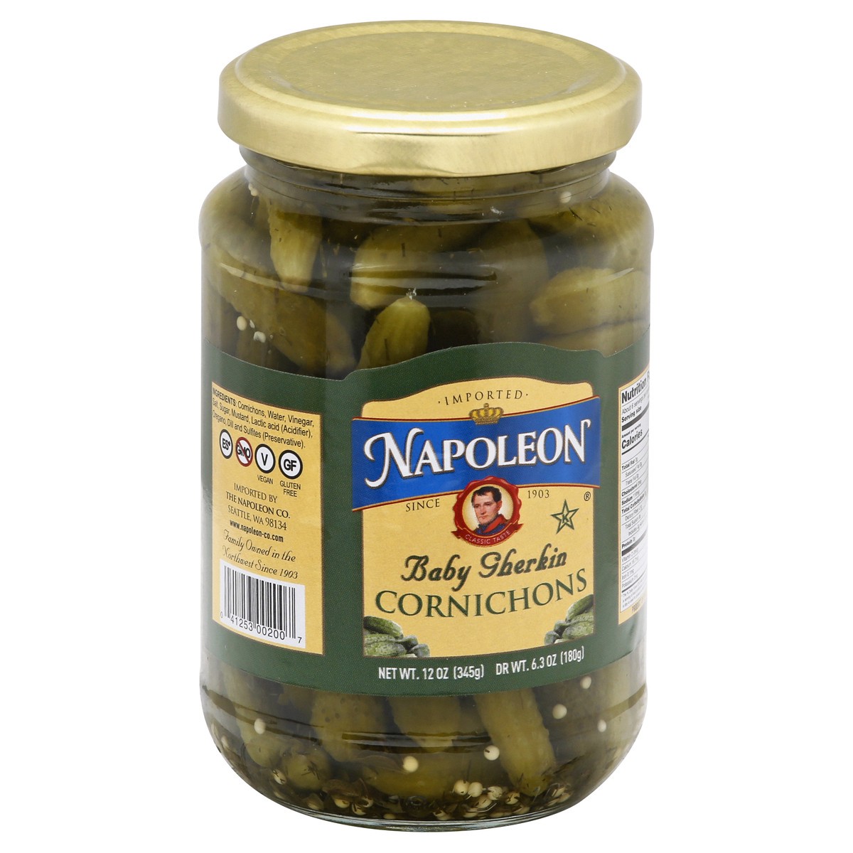 Vegan. Gluten free. No GMO. Dr wt. 6.3 oz (180 g). Imported. Since 1903. Family owned in the Northwest since 1903. www.napoleon-co.com. This product was grown using environmentally friendly, sustainab…
