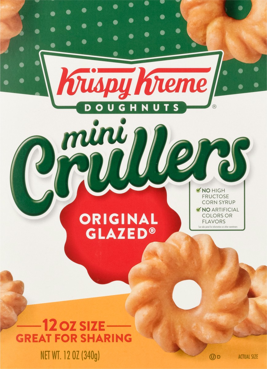 Doughnuts. No high fructose corn syrup. 12 oz size great for sharing. Treat yourself anytime, any place. Open and let the smiles begin. Krispy Kreme Mini Crullers are perfectly sized for coffee dunkin…
