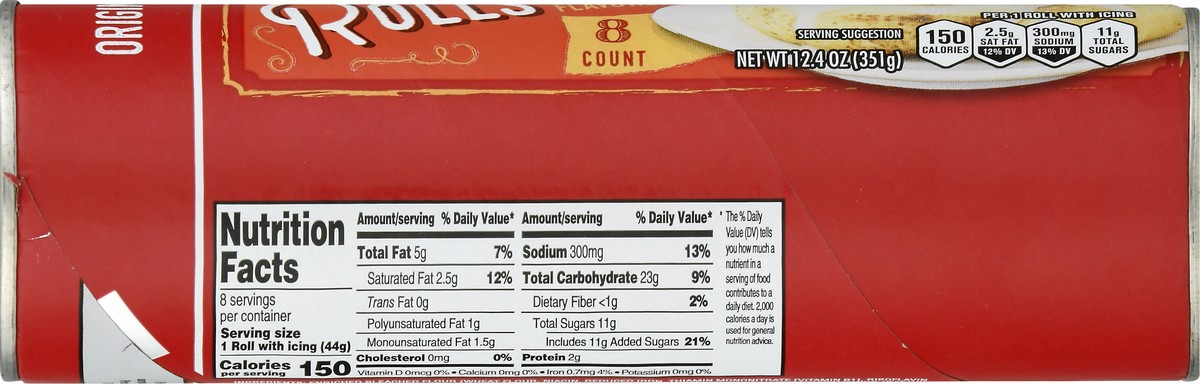 Naturally flavored. Per 1 Roll with Icing: 150 calories; 2.5 g sat fat (12% DV); 300 mg sodium (13% DV); 11 g total sugars. No high fructose corn syrup. Share your thoughts with us at 1-866-946-6349 o…