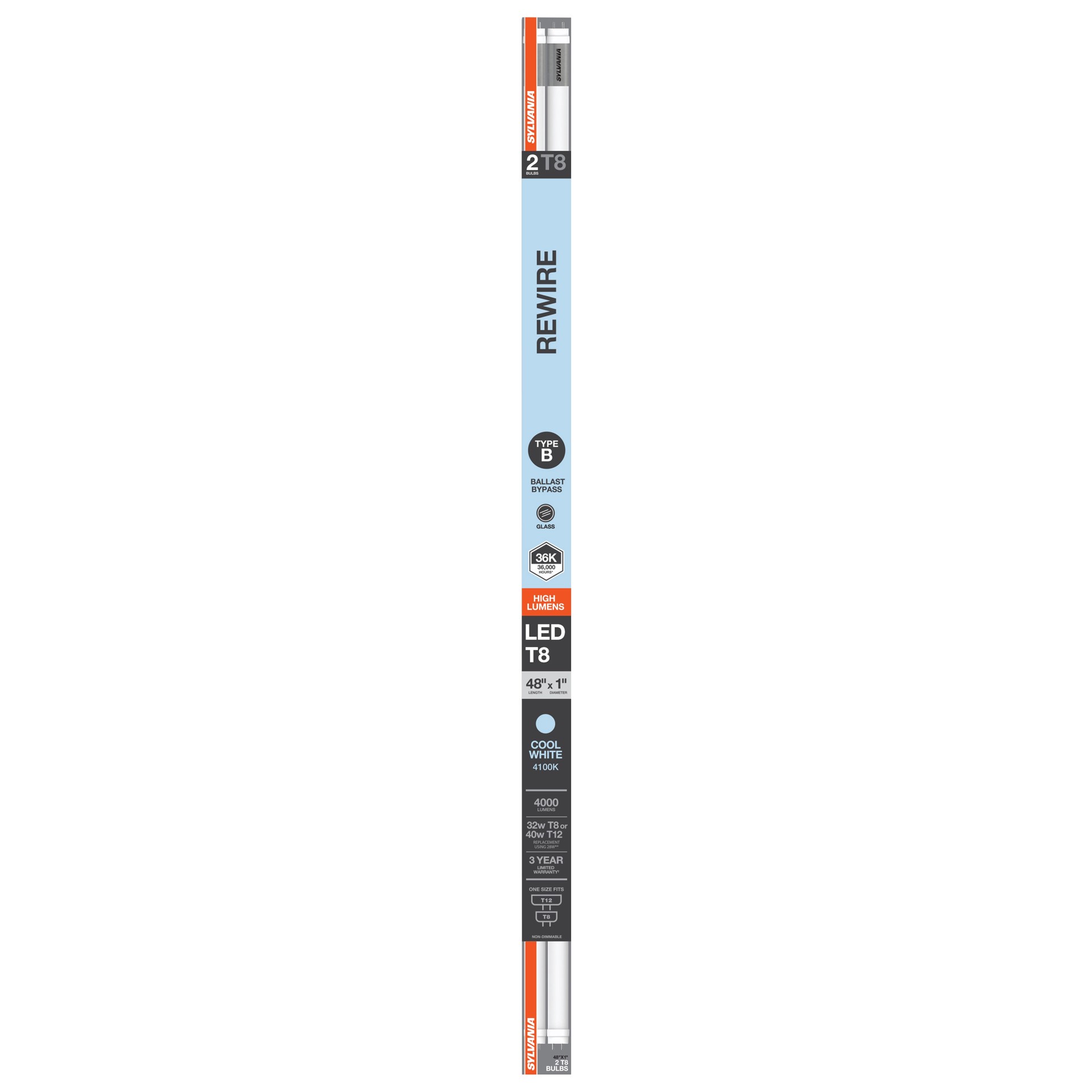 4 ft T8 High-Lumen tube light delivers twice the brightness (4000 lumens). Type B (Rewire) bypasses the fixtures ballast and connects directly to line voltage. Ideal solution if your ballast has faileā¦
