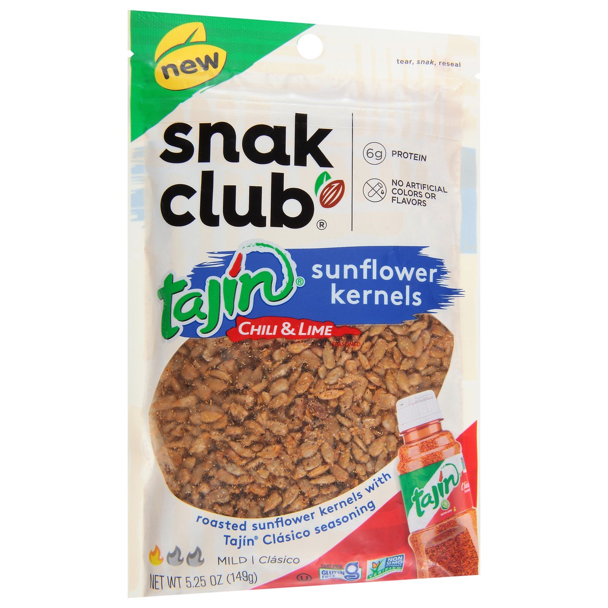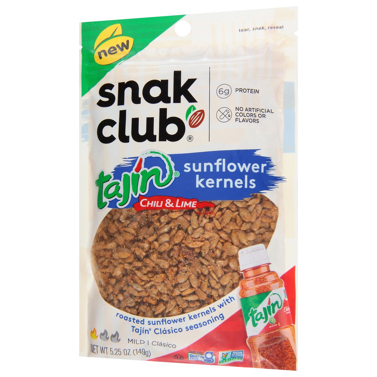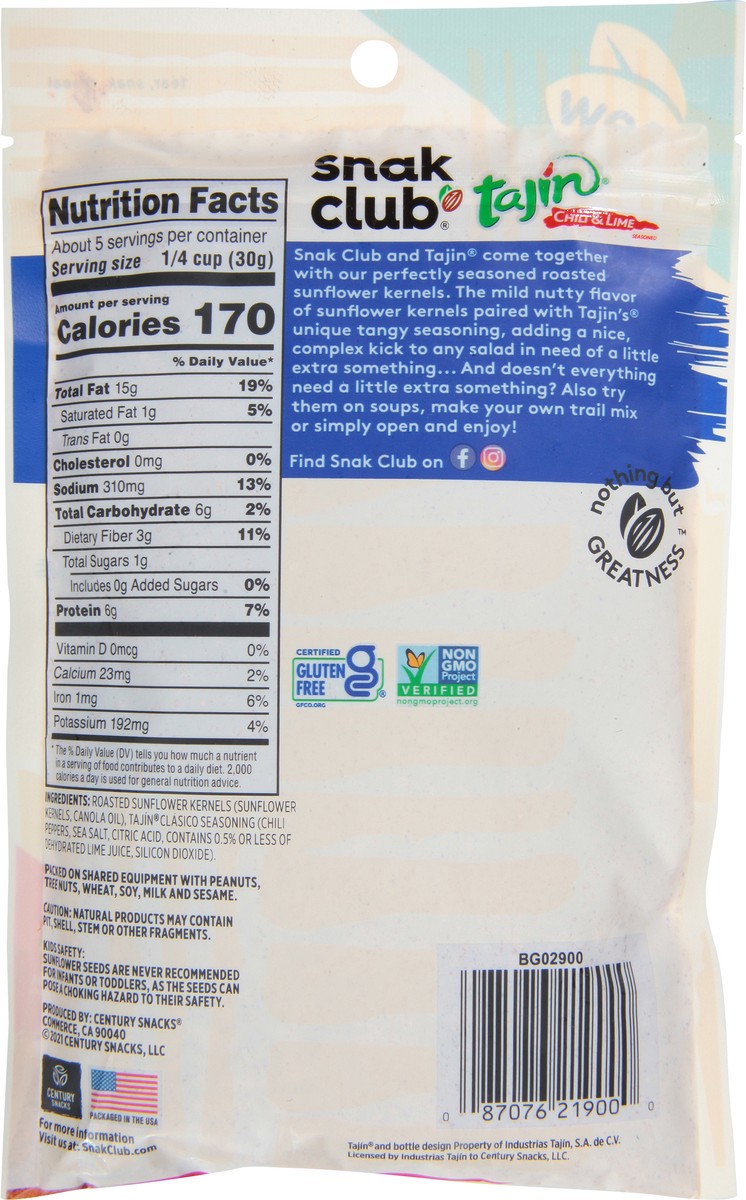 New. Mild. Clasico. Tear, snak, reseal. Snak Club and Tajin come together with our perfectly seasoned roasted sunflower kernels. The mild nutty flavor of sunflower kernels paired with Tajin's unique t…