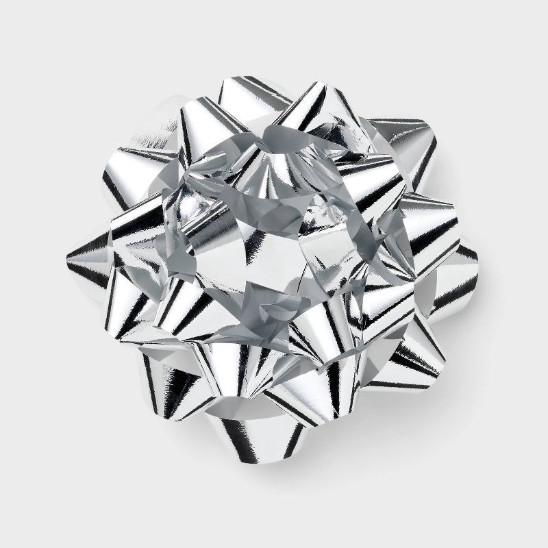 Create an impressive gift presentation with this Jumbo Glitter Bow from Spritz™. This large decorative bow features silver ribbon strands in a glittery metallic finish that are arranged into a bloomin…