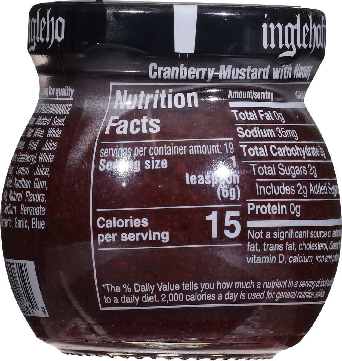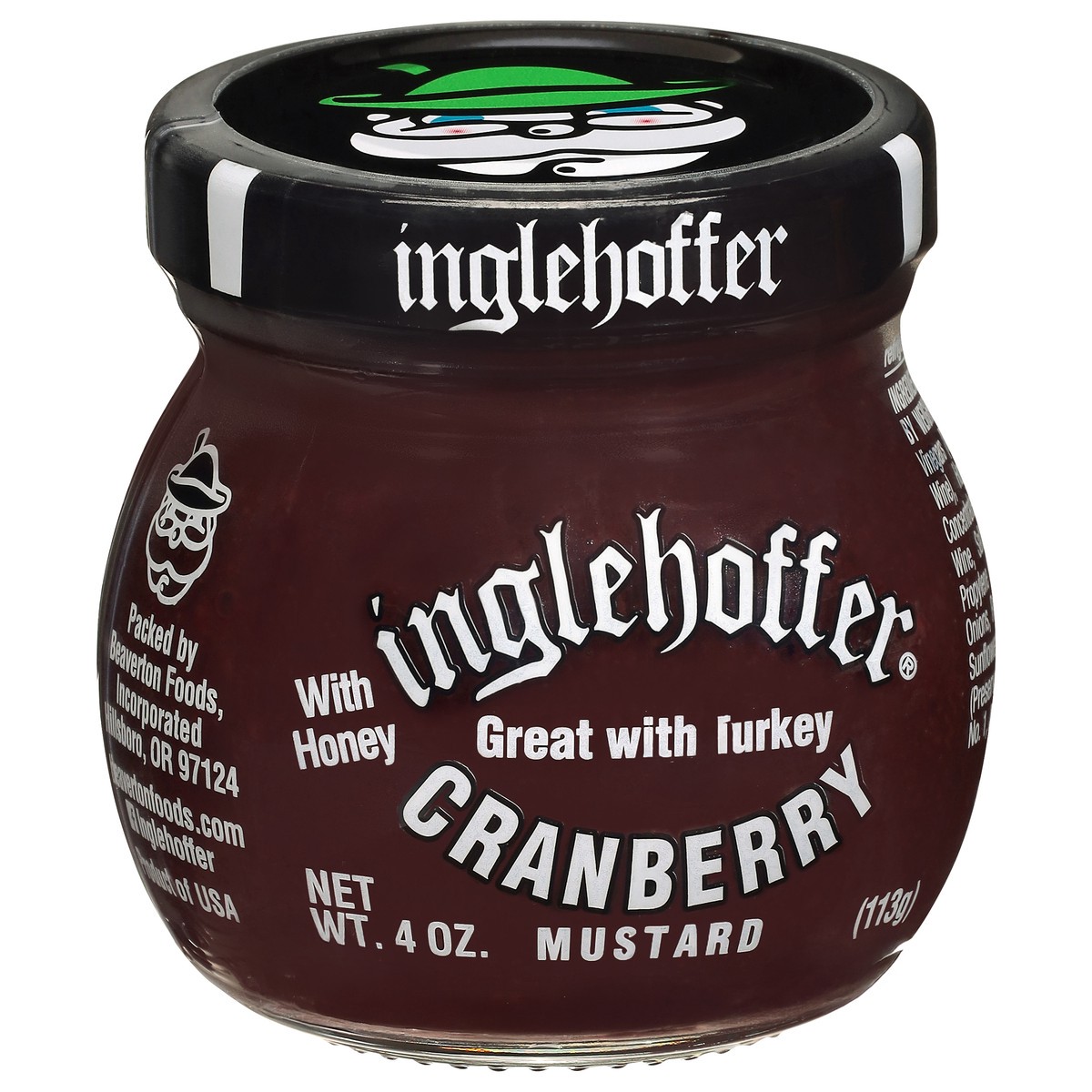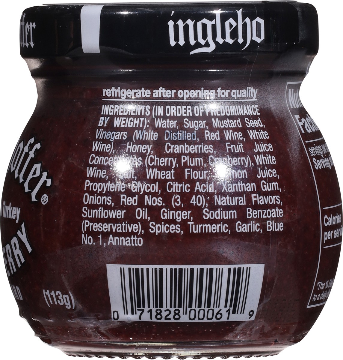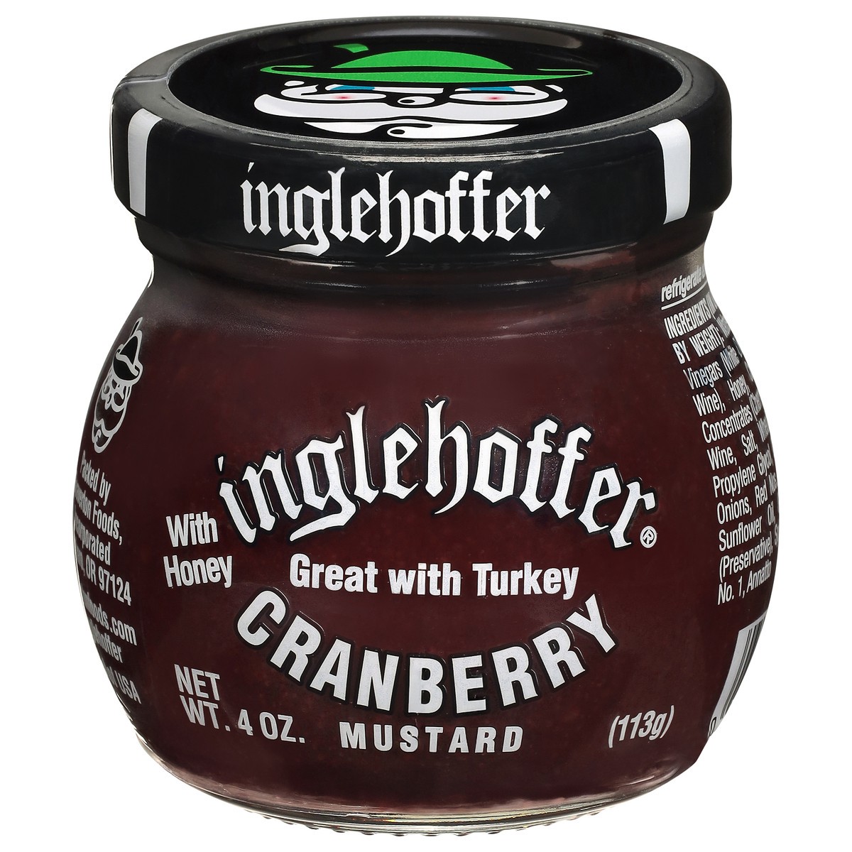 Water, Sugar, Mustard Seed, Vinegars (White Distilled, Red Wine, White Wine), Honey, Cranberries, Fruit Juice Concentrates (Cherry, Plum and Cranberry), White Wine, Salt, Wheat Flour, High Fructose Co…