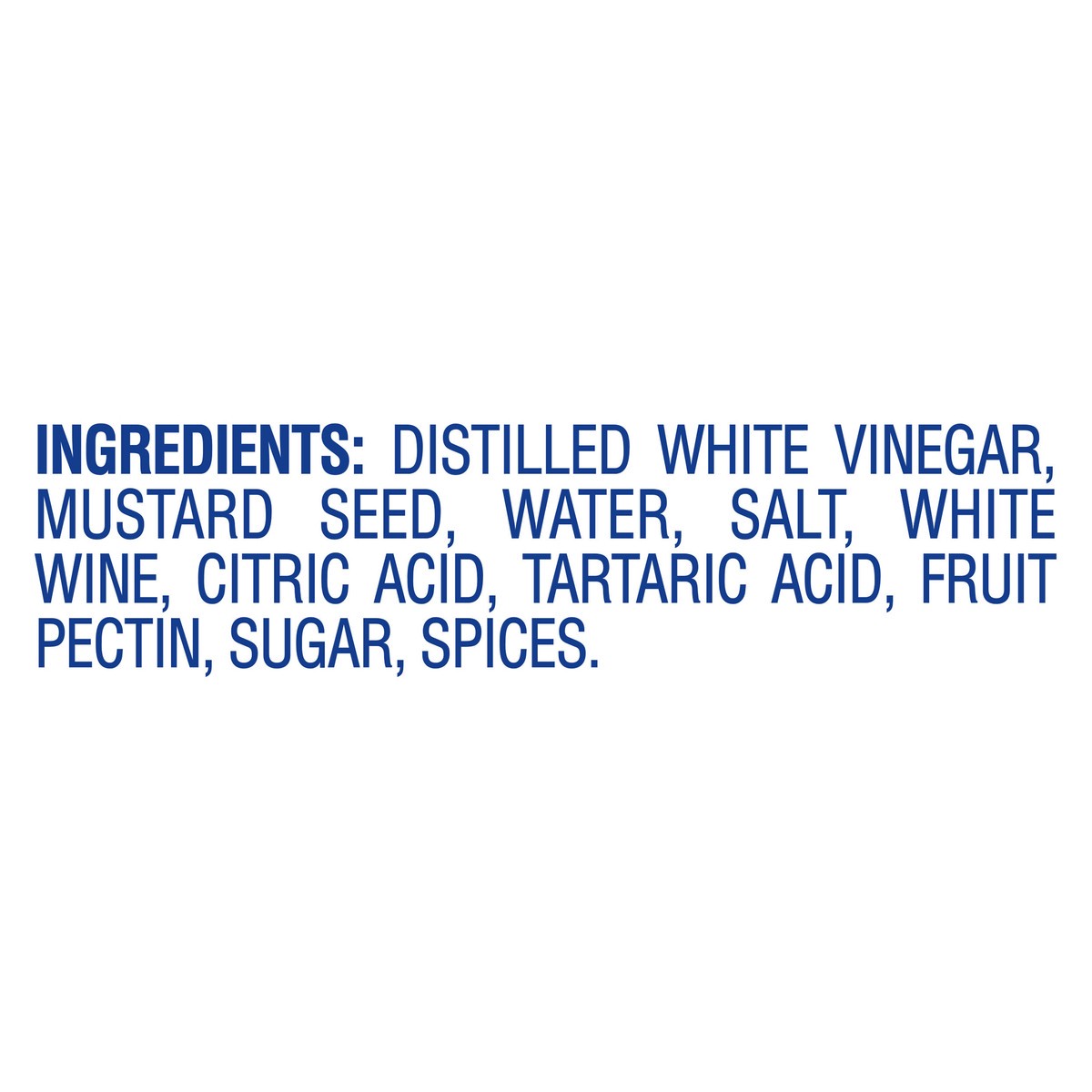 Distilled White Vinegar, Mustard Seed, Water, Salt, White Wine, Citric Acid, Tartaric Acid, Fruit Pectin, Sugar, Spices.