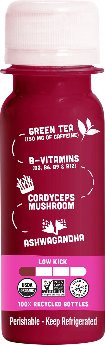 Organic Apple Juice, Organic Strawberry Juice, Organic Pineapple Juice, Organic Dragon Fruit Puree, Organic Lemon Juice, Organic Ginger Juice, Organic Green Tea Extract (Caffeine), Organic Cordyceps M…