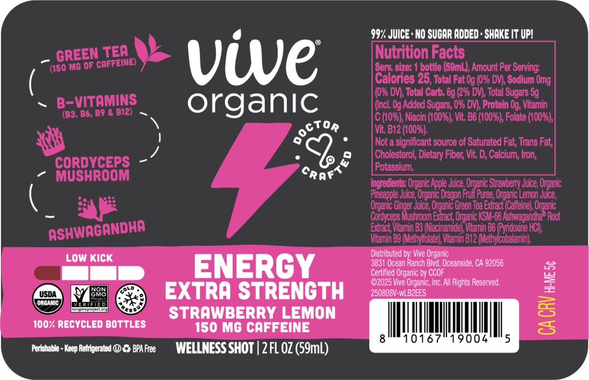 Vive Organic Energy Extra Strength Strawberry Lemon Wellness Shot - 2 fl oz