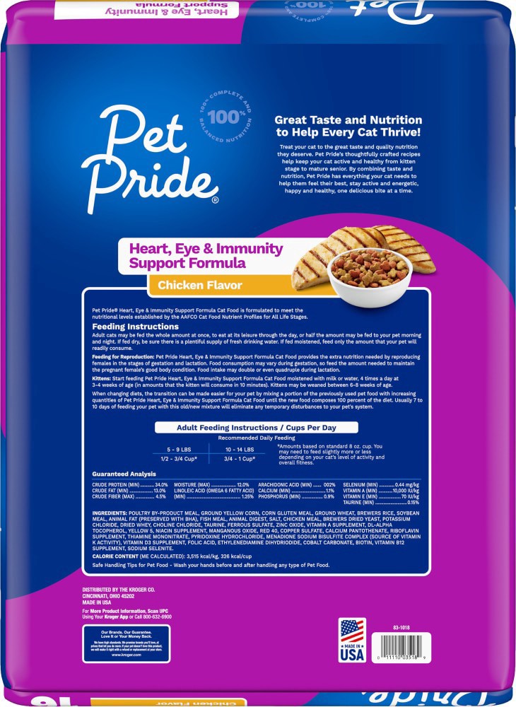 Pet Pride® Heart Eye & Immunity Support All Life Stages Dry Cat Food Chicken Flavor is crafted for your cat's well-being, with essential nutrients to support a healthy skin and coat. Our formula provi…