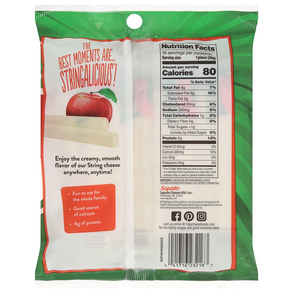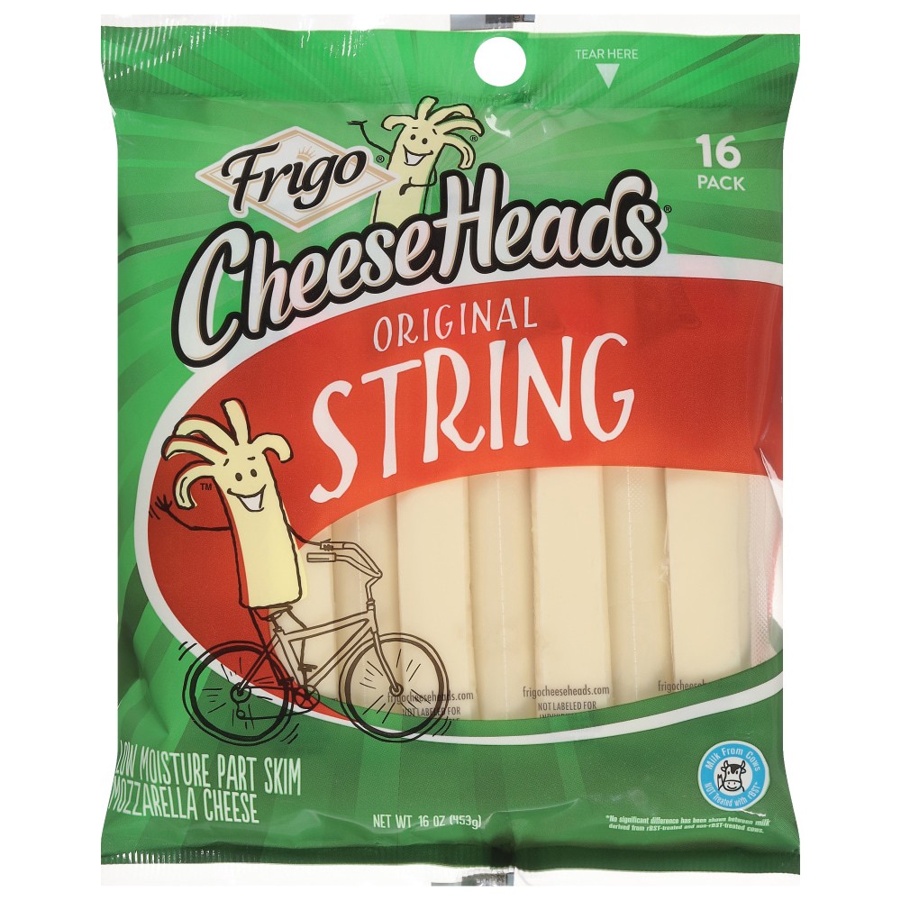 Experience the smooth, irresistible flavor of Frigo® Cheese Heads® Original Low-Moisture Part-Skim Mozzarella String Cheese, your go-to snack for any time of the day. Frigo® Cheese Heads® Original Str…