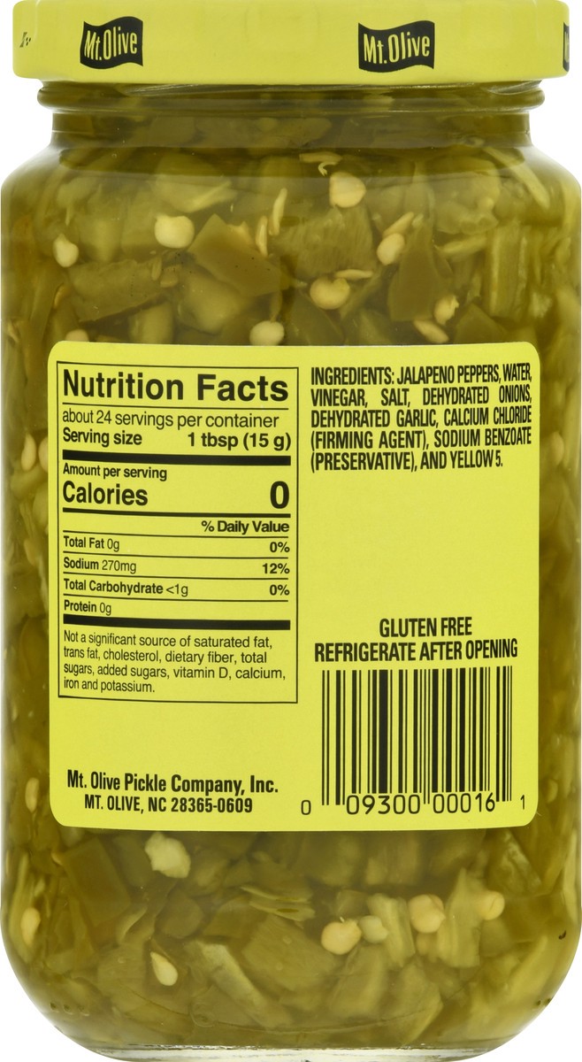 - One 12 fl oz jar of Mt. Olive Diced Jalapeno Peppers