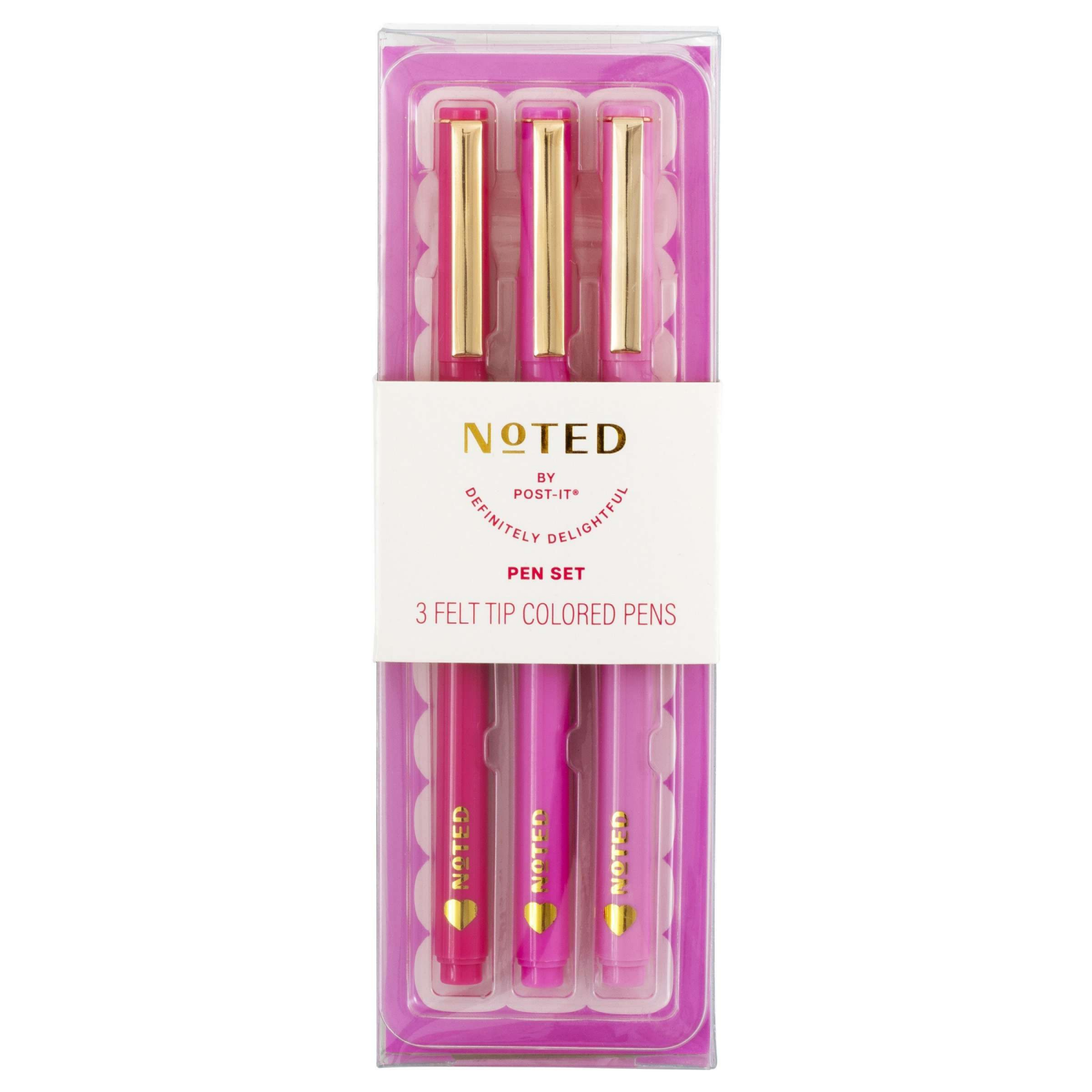 CELEBRATE IN STYLE: This stylish set of 3 Felt Tip Pens in delightful shades of pink features shiny gold accents and the felt tip ink color matches the barrel color; these irresistible pens will help …