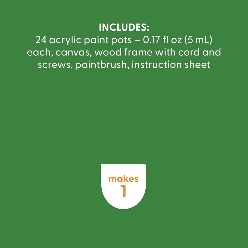 - Includes 4 white canvas boards, 24 acrylic pots, 2 paintbrushes and instruction sheet