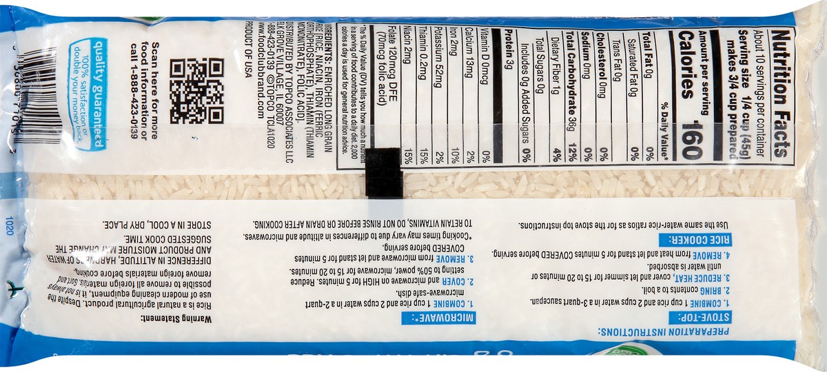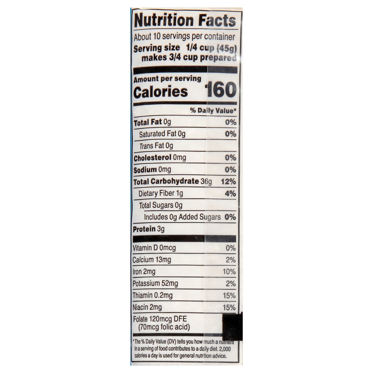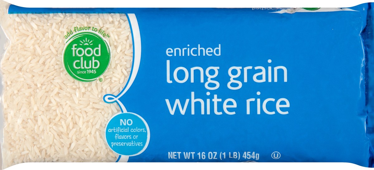 Long Grain White Rice, Niacin, Iron (Ferric Orthophosphate), Thiamine (Thiamine Mononitrate), Folic Acid (Folate).