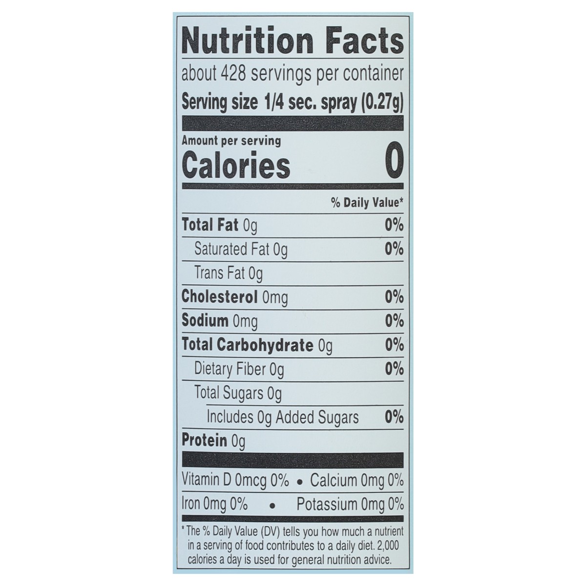 Soybean Oil (Adds a Trivial Amount of Fat), Soy Lecithin, Wheat Flour, Silicon Dioxide, TBHQ (a Preservative).