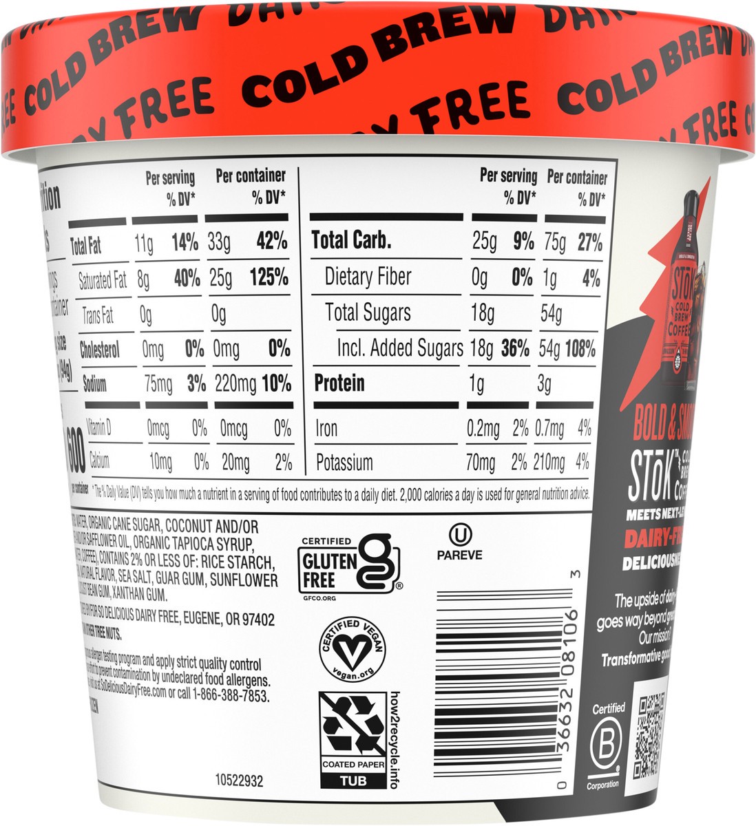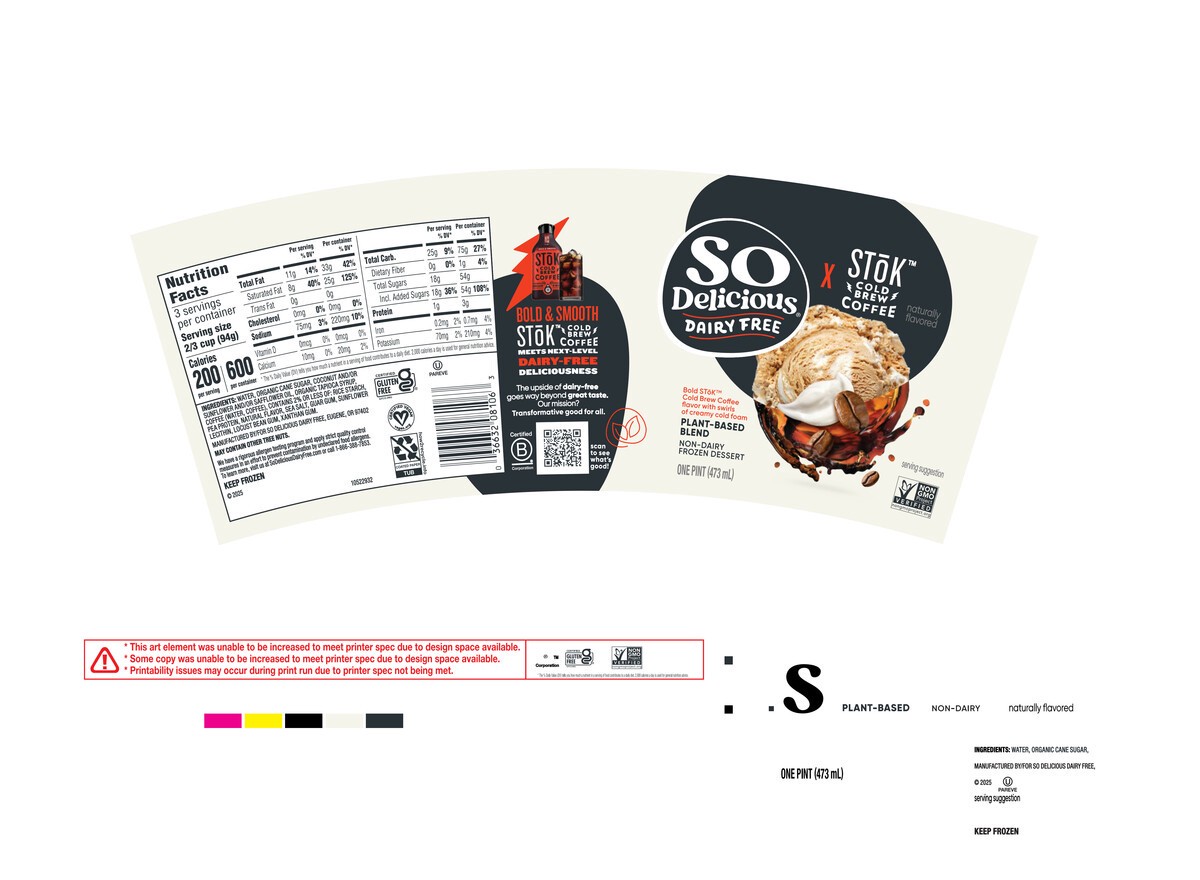 So Delicious Dairy Free SToK Cold Brew Coffee Plant Based Blend Frozen Dessert 1 Pint