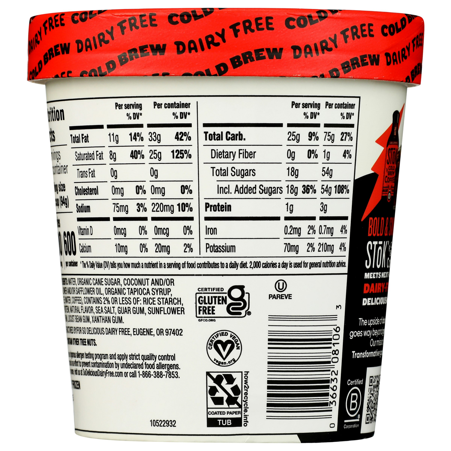 So Delicious Dairy Free SToK Cold Brew Coffee Plant Based Blend Frozen Dessert 1 Pint