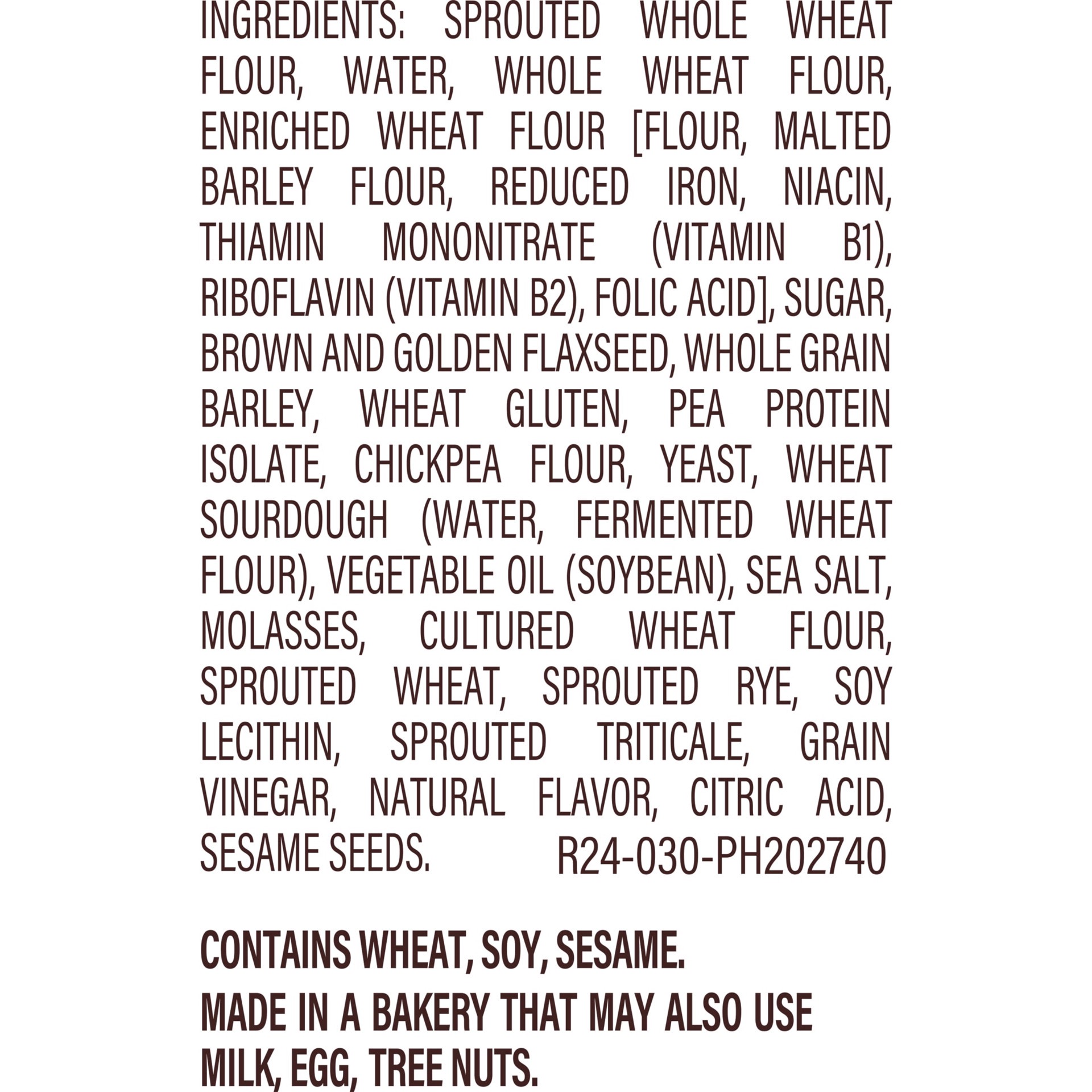 Sprouted Whole Wheat Flour, Water, Whole Wheat Flour, Enriched Wheat Flour [Flour, Malted Barley Flour, Reduced Iron, Niacin, Thiamin Mononitrate, Riboflavin, Folic Acid], Sugar, Brown And Golden Flax…