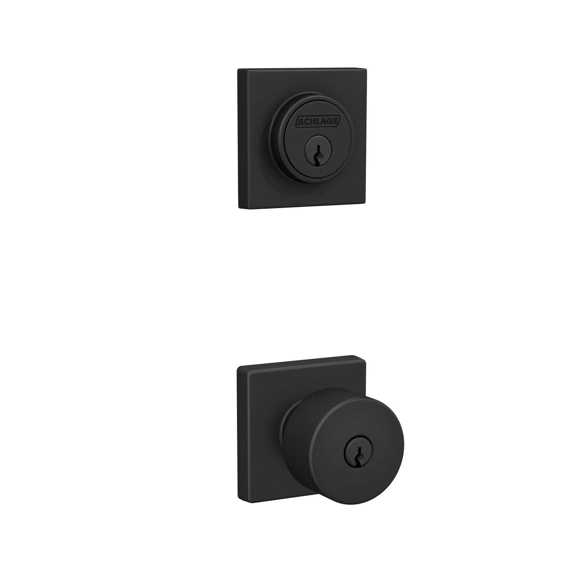 Home Front by Schlage Ryson-Evans Matte Black Exterior Single-Cylinder Deadbolt and Keyed Entry Door Knob Combo Pack