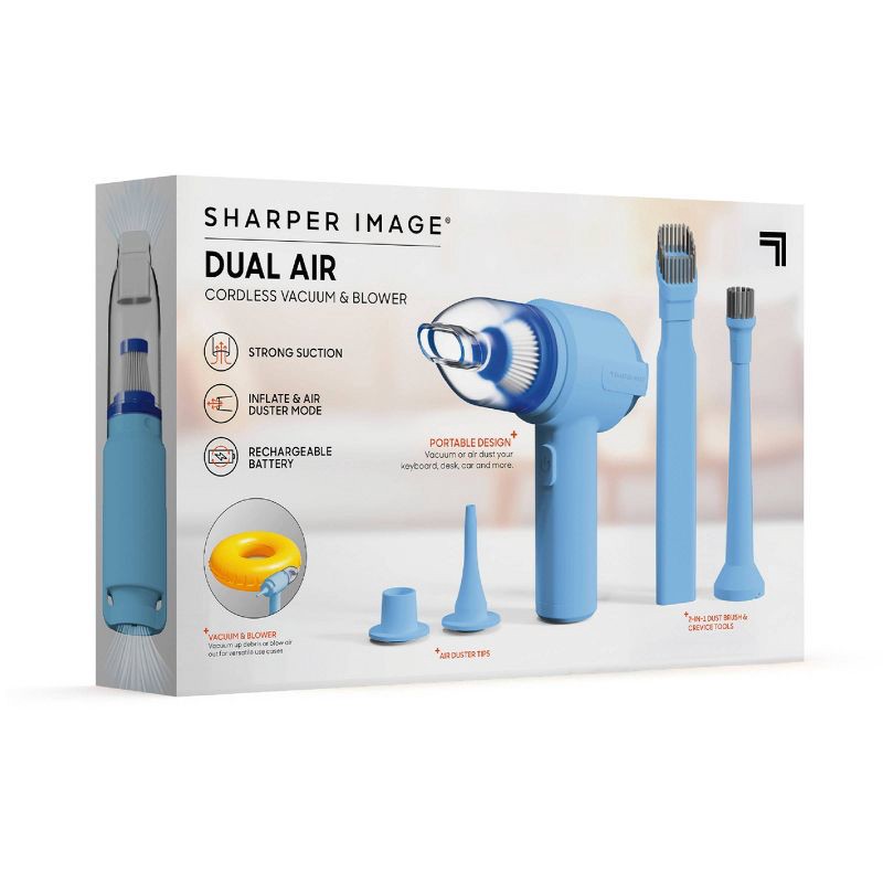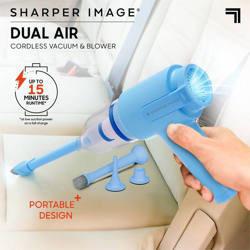 The Sharper Image® Dual Air Cordless Vacuum & Blower is a portable 2-in-1 device that makes quick cleanups easier than ever. Switch between strong suction to pick up debris and air-blowing mode to dus…