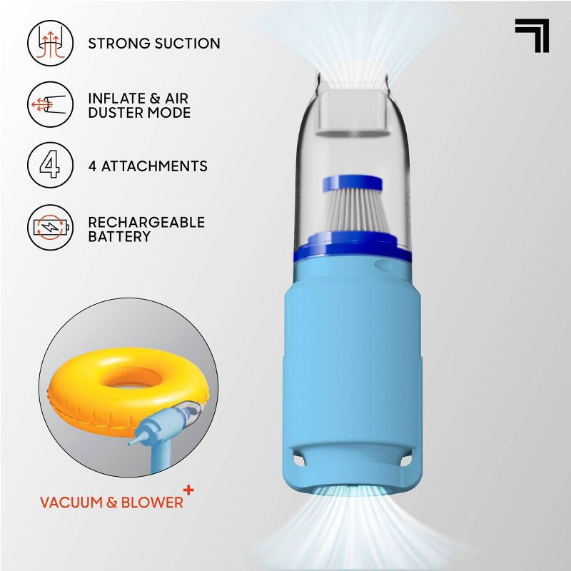 - Strong suction power removes debris; blower mode clears dust or inflates