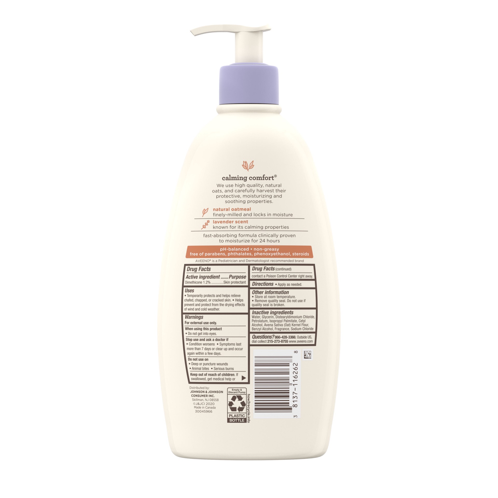 Aveeno Baby Calming Comfort Moisturizing Lotion with Relaxing Lavender & Vanilla Scents, Non-Greasy Baby Body Lotion, Natural Oatmeal & Dimethicone, Paraben- & Phthalate-Free, 18 fl. oz