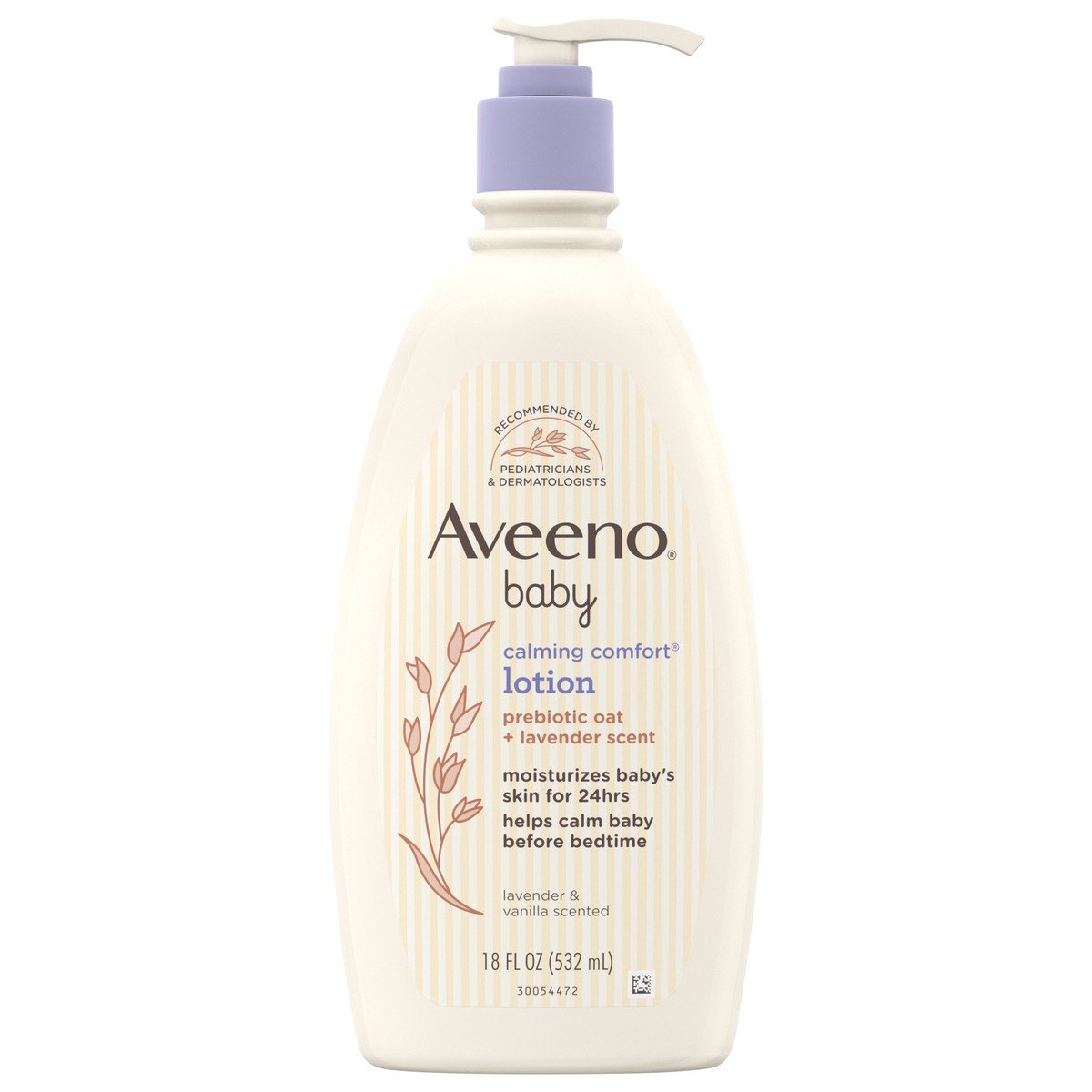 - Aveeno Baby Calming Comfort Moisturizing Bedtime Lotion with relaxing scents of lavender & vanillaMade with lavender & vanilla scents