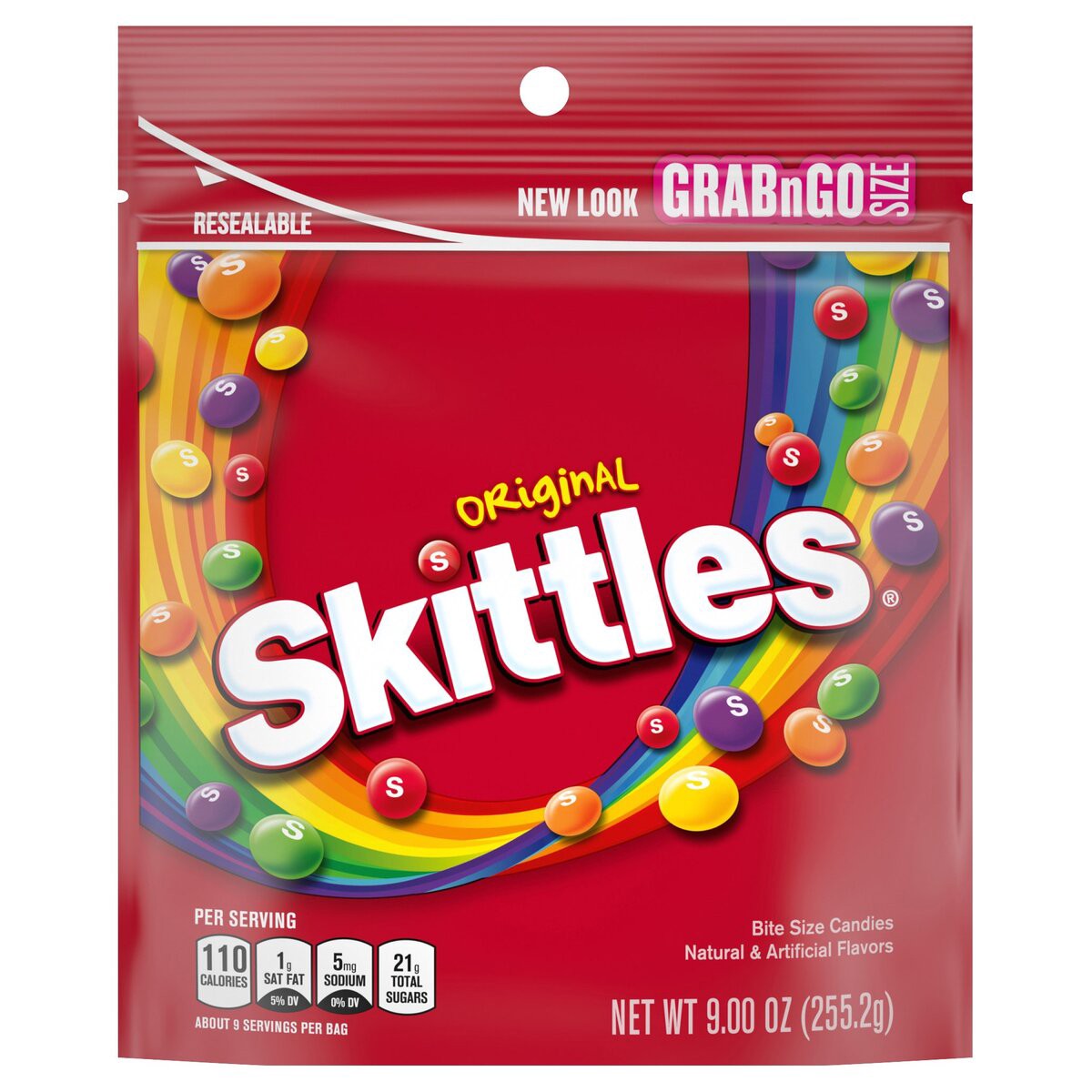 - Contains one (1) 9-ounce Grab N Go bag of SKITTLES Original Chewy Candy AssortmentThe Original fruity candy flavor line-up includes strawberry