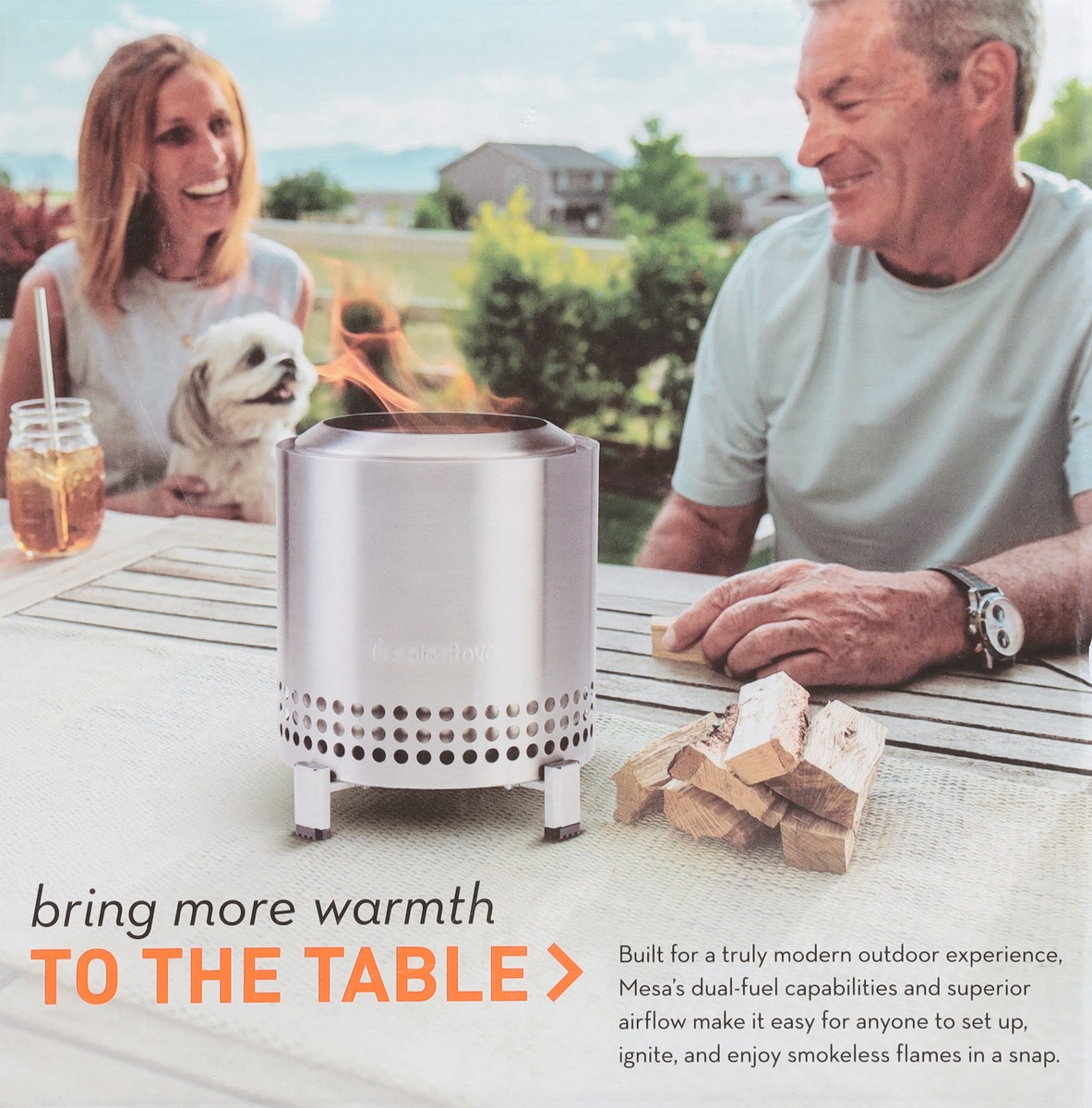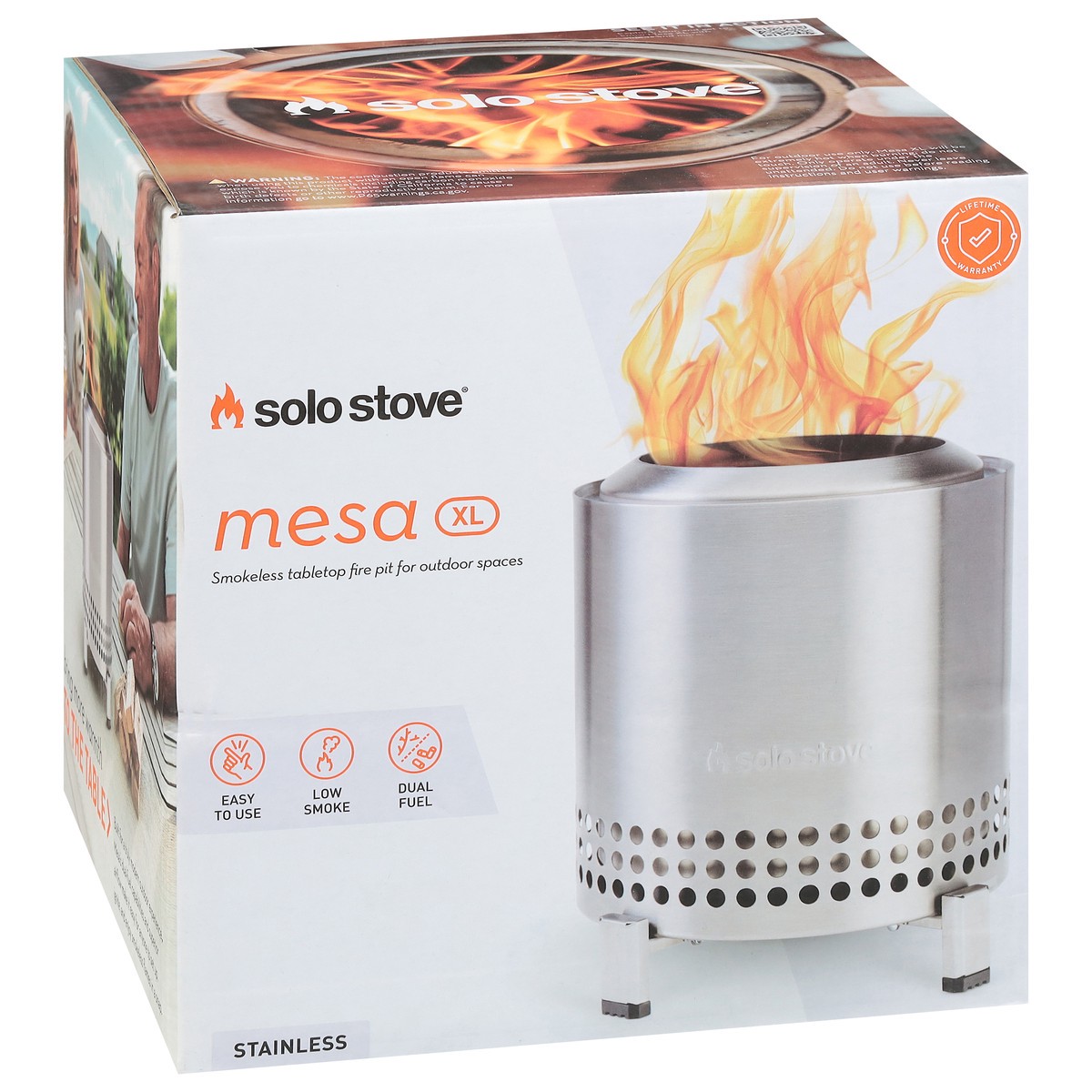 "Enjoy fireside moments right from your tabletop with a smokelessMesa XL. Featuring Solo Stove's Signature 360° Airflow, this fire pit iscompact enough to fit anywhere and powerful enough to providege…