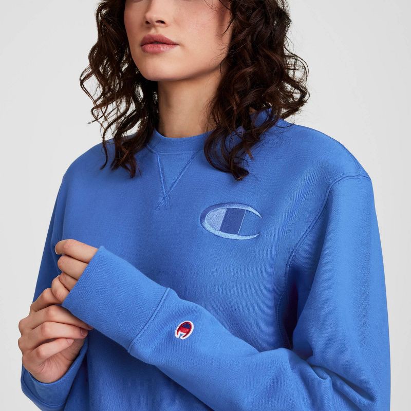 - Iconic embroidered “C” Champion logo at left chest and embroidered “C” patch at left sleeve