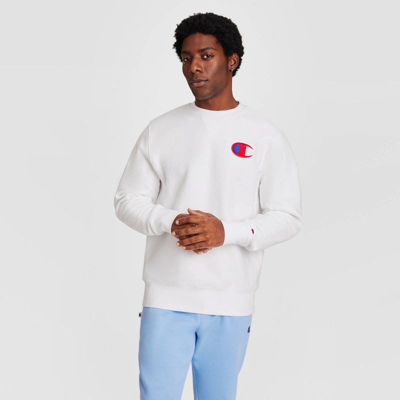 - Iconic embroidered “C” Champion logo at left chest and embroidered “C” patch at left sleeve