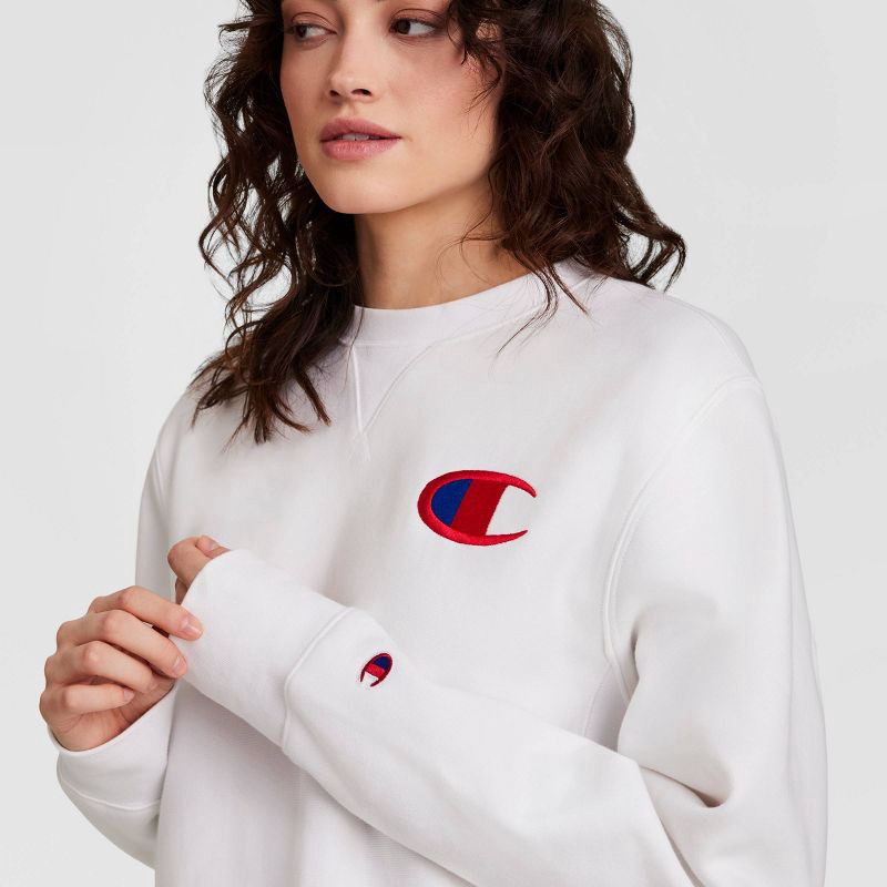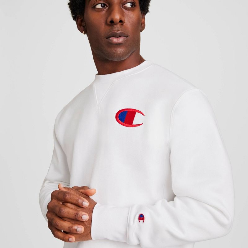 - Iconic embroidered “C” Champion logo at left chest and embroidered “C” patch at left sleeve
