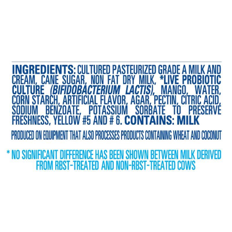 Cultured Pasteurized Grade A Milk and Cream, Cane Sugar, Non Fat Dry Milk, Live Probiotic Culture (Bifidobacterium Lactis)(Billions of Probiotics and Live & Active Cultures per Serving), Mango, Water,…